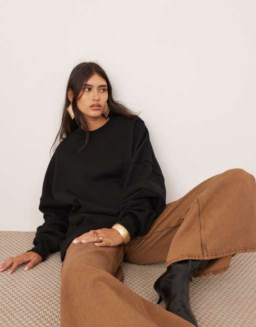 ASOS EDITION – Hochwertiges, schweres Sweatshirt in Schwarz mit Ziernaht