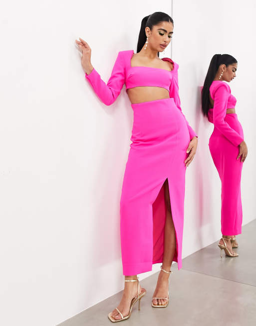 ASOS EDITION – Langärmliges, markantes Maxikleid in Hot Pink mit eckigem Ausschnitt