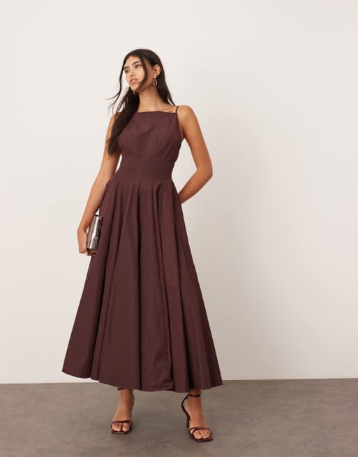 ASOS EDITION – Maxikleid in Burgunderrot mit Ringerrücken, Rückenausschnitt und Ziernaht