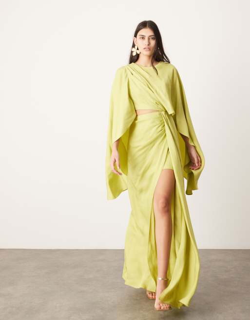ASOS EDITION – Maxikleid in Limettengrün mit Zierausschnitt und voluminösen, ausgestellten griechischen Ärmeln
