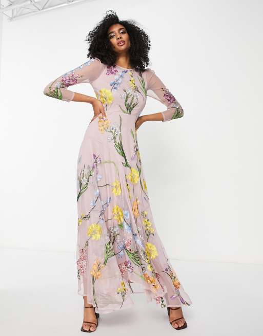 ASOS EDITION – Maxikleid mit Gartenblumenstickerei in Rosa