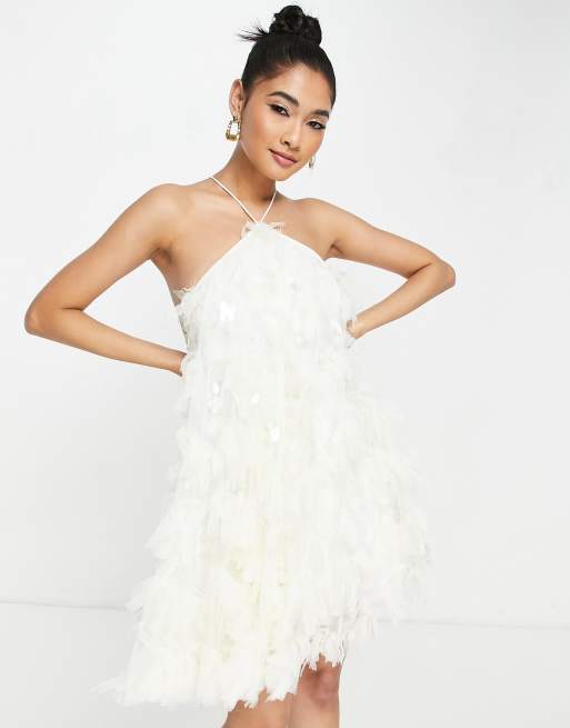 ASOS EDITION – Minikleid aus strukturiertem Netzstoff in Creme mit offenem Rücken