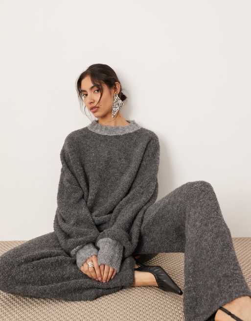 ASOS EDITION – Oversize-Pullover aus Bouclé-Strick in Anthrazit mit Kontrastkragen