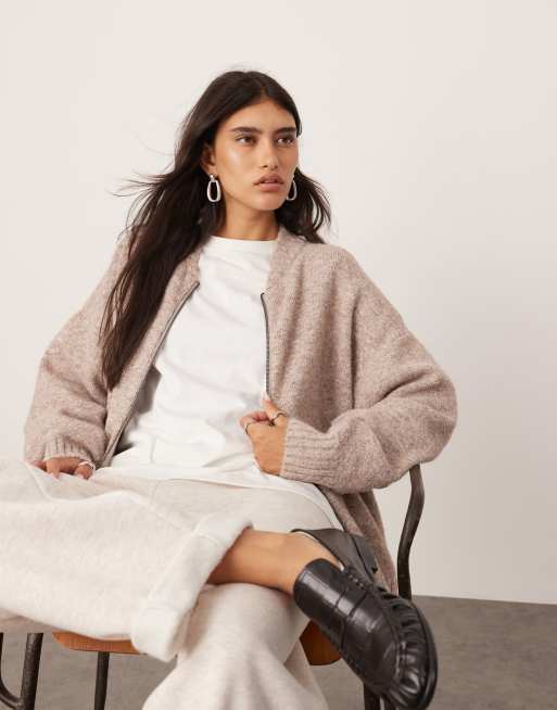 ASOS EDITION – Pullover aus kompaktem Strick in Hellbeige mit durchgehendem Reißverschluss