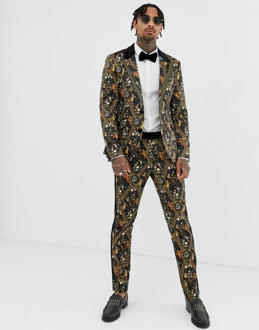 ASOS EDITION – Schmaler Anzug aus Satin mit Barockmuster