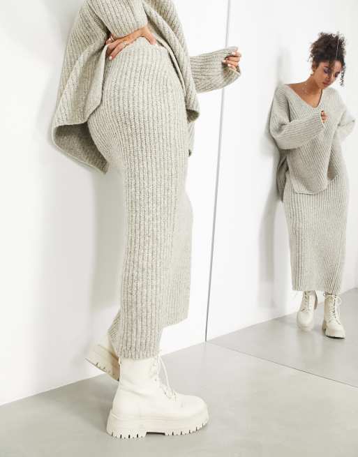 ASOS EDITION – Schmaler Midirock in Hellbeige aus geripptem Grobstrick