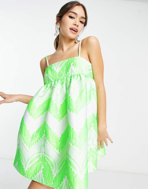 ASOS EDITION – Trapez-Minikleid in Neon-Jacquard im Empire-Stil