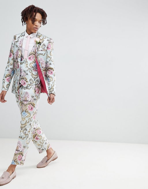 ASOS EDITION Wedding – Enger Anzug mit Jacquard-Blumenmuster in Pastellfarben