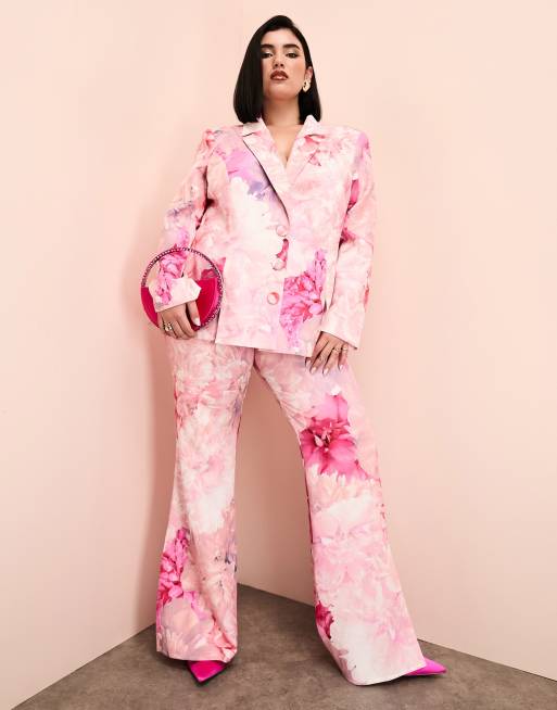 ASOS LUXE Curve – Anzughose mit rosa Blumenmuster, Kombiteil