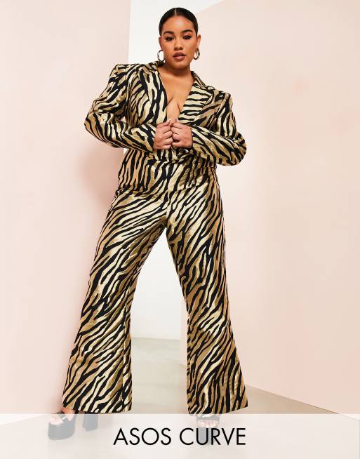 ASOS LUXE Curve – Eleganter Jumpsuit aus Jacquardstoff mit Zebramuster