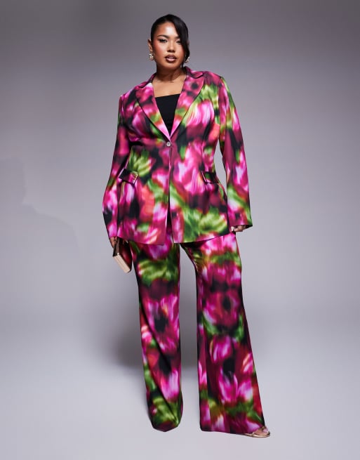 ASOS LUXE Curve – Elegantes Set mit Blazer und Hose mit verschwommenem, dunklem Blumenprint