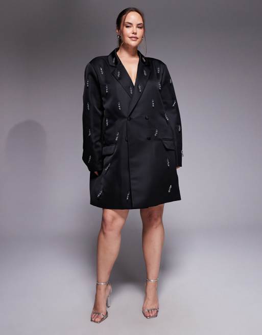 ASOS LUXE Curve – Oversize-Blazerkleid in Schwarz mit Perlenfransen