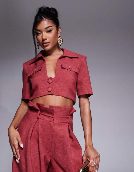 ASOS LUXE – Kurzärmliges Cropped-Hemd in Himbeerrot, Kombiteil