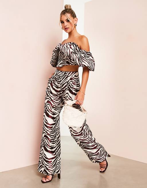 ASOS LUXE – Satinhose mit weitem Schnitt und Zebramuster, Kombiteil