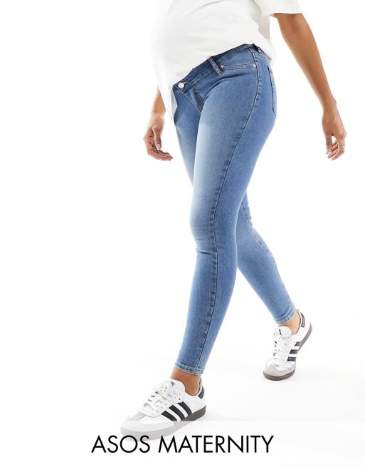 ASOS DESIGN Maternity – Enge Jeans in Mittelblau