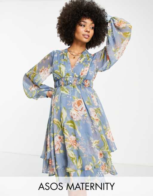 ASOS DESIGN Maternity – Geblümtes Minikleid mit Perlenverzierung und Raffung