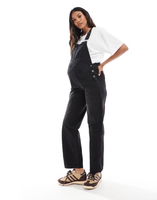 ASOS DESIGN Maternity – Jeans-Latzhose in verwaschenem Schwarz
