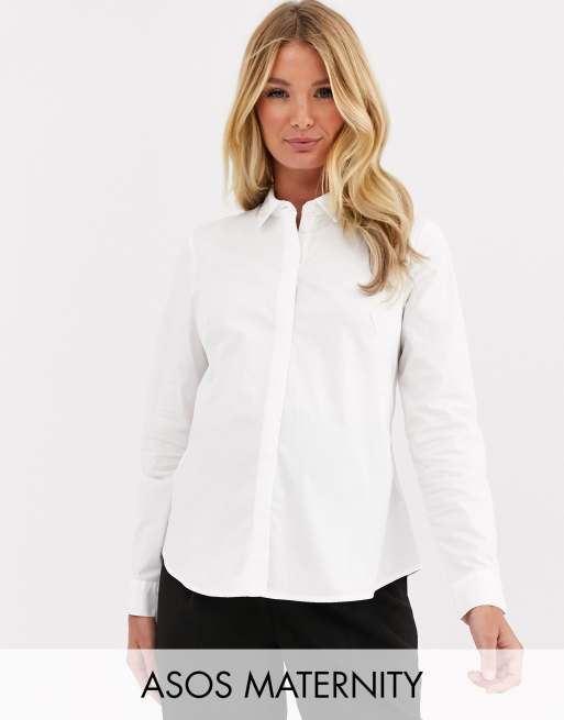 ASOS DESIGN Maternity – Langärmliges, enges Hemd aus Baumwollstretch in Weiß