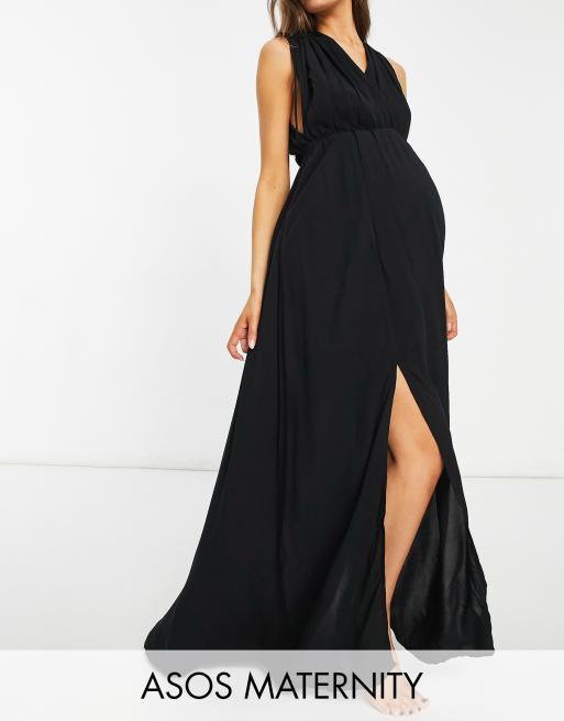 ASOS DESIGN Maternity – Maxi-Strandkleid in Schwarz mit gerafftem Detail