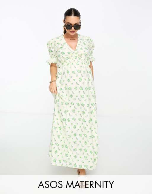 ASOS DESIGN Maternity – Midi-Hängerkleid aus Baumwolle in Creme mit grünem Blumenprint