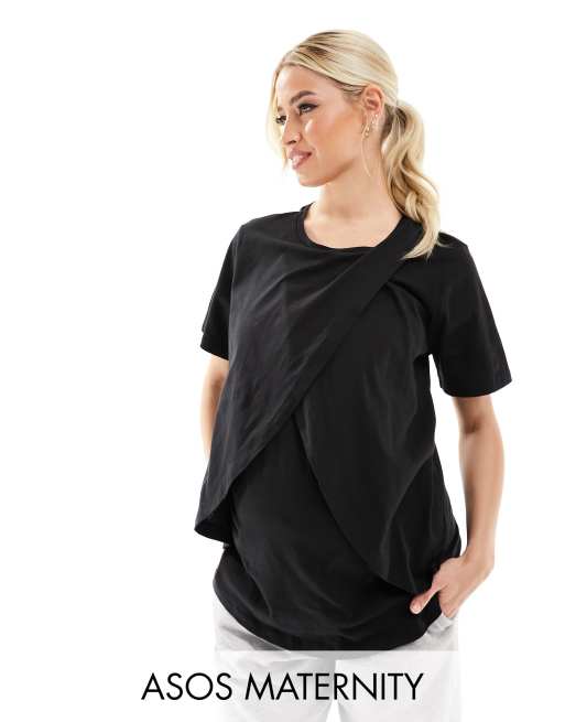 ASOS DESIGN Maternity – Mix & Match – Exclusive – Pyjamashirt aus Baumwolle in Schwarz mit Stillfunktion