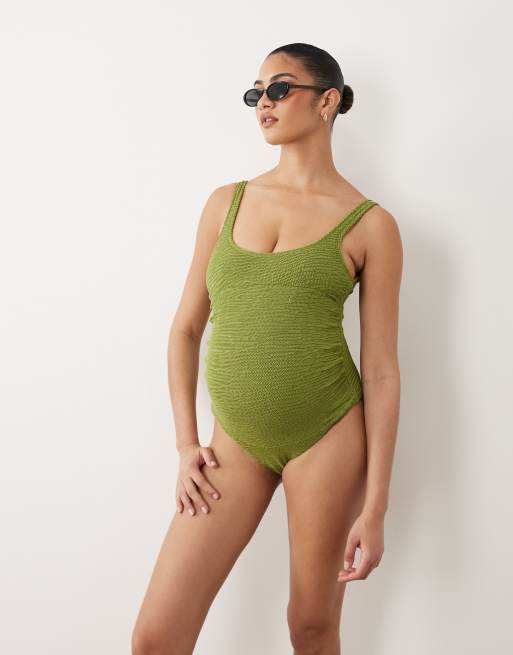 ASOS DESIGN Maternity – Oceana – Badeanzug in Grün mit U-Ausschnitt