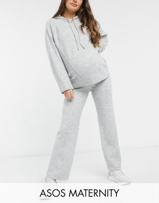 ASOS DESIGN Maternity – Oversize-Kapuzenpullover aus Strick und Hose in Grau, Zweiteiler