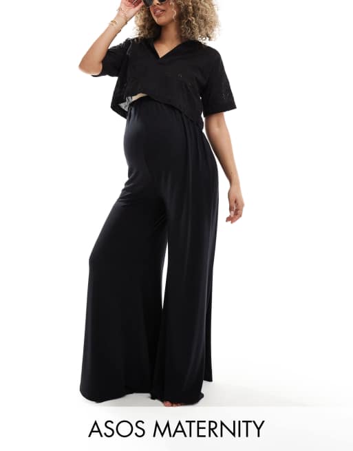 ASOS DESIGN Maternity – Palazzo-Strandhose aus Jersey in Schwarz