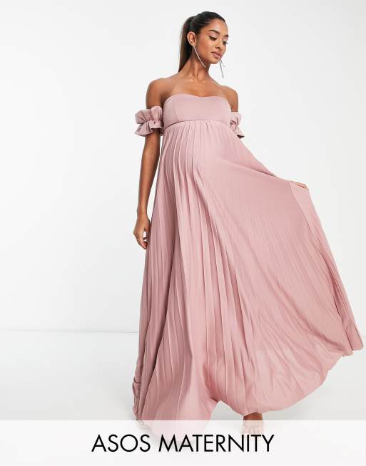 ASOS DESIGN Maternity – Plissiertes Bardot-Maxikleid in Rosé - LPINK