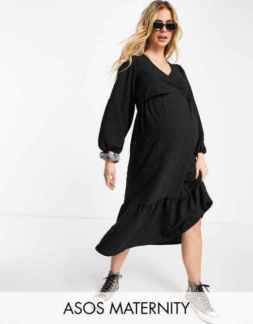ASOS DESIGN Maternity – Schwarzes Still-Wickelkleid in Maxilänge mit Schößchen