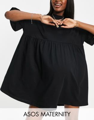 ASOS DESIGN – Umstandsmode – Schwarzes, extrem übergroßes Hängerkleid mit Rüschenärmeln