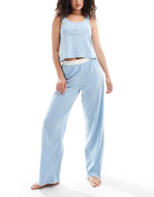 ASOS DESIGN – Mix & Match – Pyjama in Blau mit Picot-Saum
