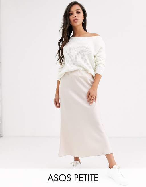 ASOS DESIGN Petite – Asymmetrisch geschnittener Midirock aus Satin