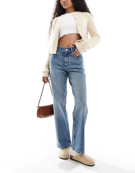 ASOS DESIGN Petite – Bequeme Jeans mit geradem Schnitt und Stretchanteil in Mittelblau
