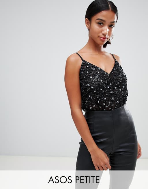 ASOS DESIGN Petite – Body mit Paillettenverzierung