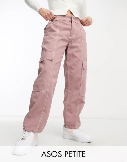 ASOS DESIGN Petite – Cargohose in Nerzrosa mit kontrastierenden Ziernähten und Nahtdetails