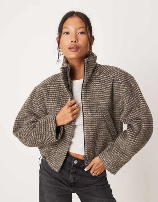 ASOS DESIGN Petite – Elegante, karierte Bomberjacke mit Stehkragen