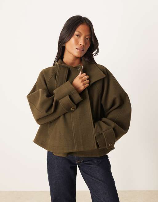 ASOS DESIGN Petite – Formeller Cape-Mantel in Olivgrün mit Cropped-Schnitt