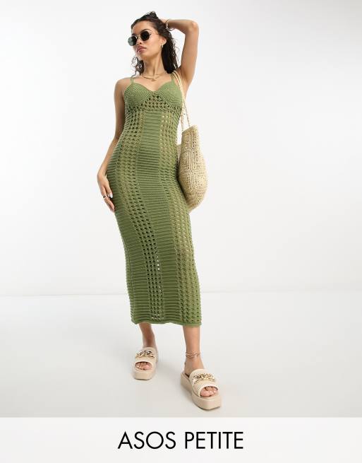 ASOS DESIGN Petite – Gehäkeltes Maxikleid in Khaki