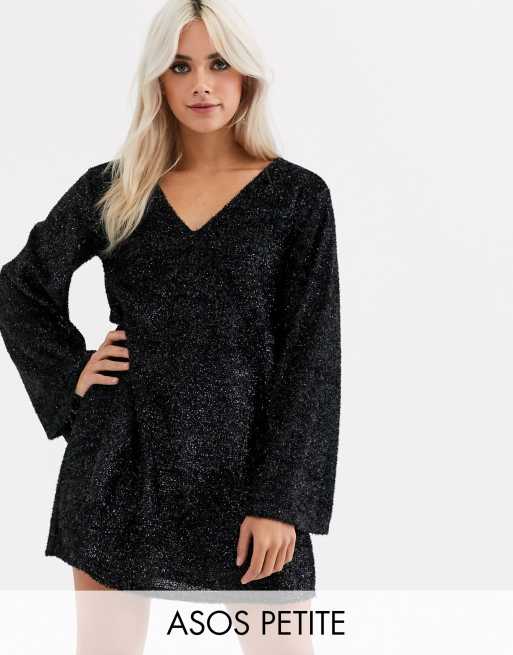 ASOS DESIGN Petite – Glitzerndes Hängerkleid mit Ballonärmeln