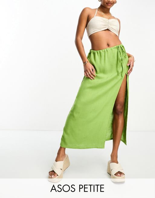 ASOS DESIGN Petite – Grüner Maxirock aus Leinen mit hohem Schlitz