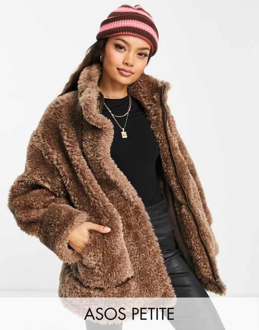 ASOS DESIGN Petite – Hero – Mantel zum Reinschlüpfen aus Teddyfell in Braun