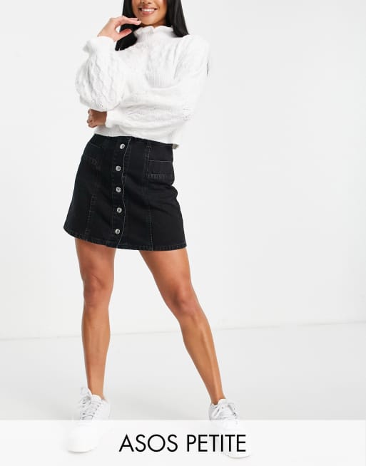 ASOS DESIGN Petite – Jeansrock aus Baumwollmix in verwaschenem Schwarz mit durchgehender Knopfleiste - BLACK