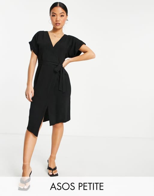 ASOS DESIGN Petite – Midi-Wickelkleid in Schwarz