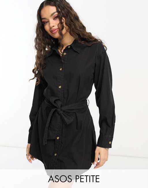 ASOS DESIGN Petite – Mini-Jeanskleid in Schwarz mit Gürtel