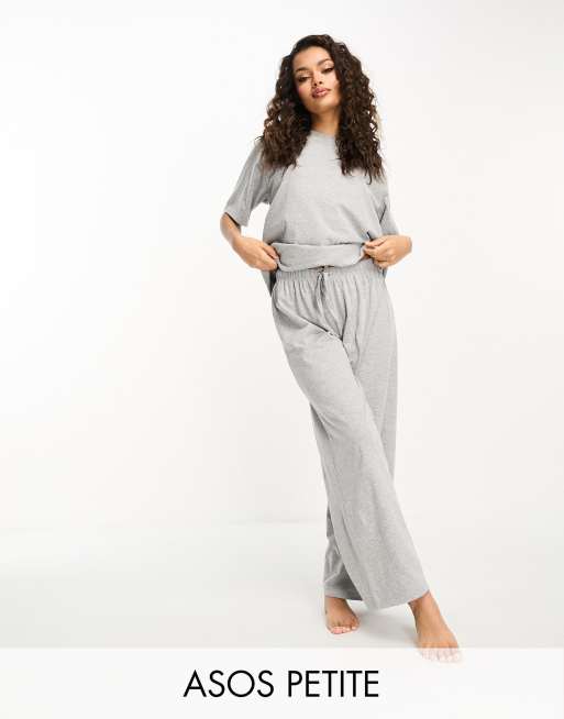 ASOS DESIGN Petite – Mix & Match – Pyjamahose aus Baumwolle in meliertem Grau