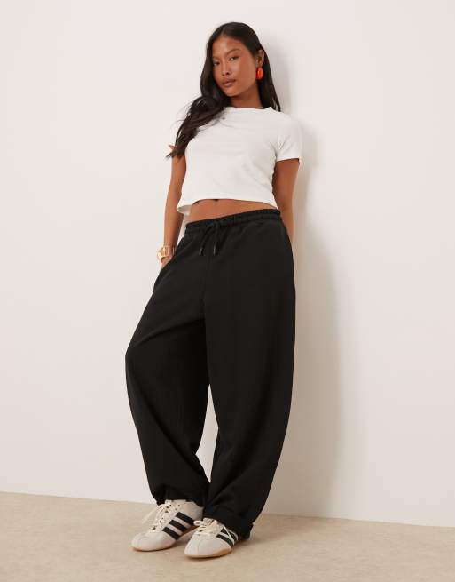 ASOS DESIGN Petite – Oversize-Jogginghose in Schwarz mit umgeschlagenem Saum
