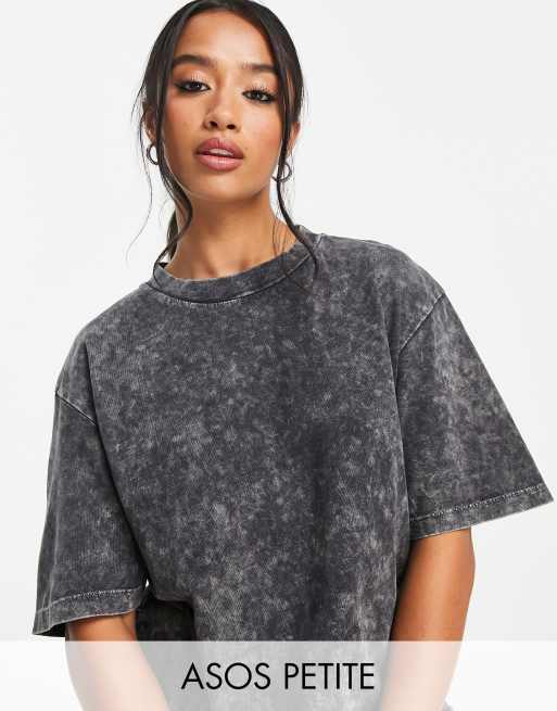 ASOS DESIGN Petite – Oversize-T-Shirt in verwaschenem Schwarz
