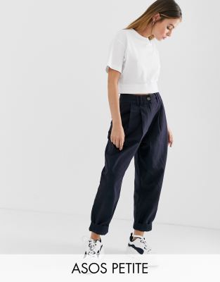 ASOS DESIGN Petite – Ovoid – Karottenhose mit Bundfalten in Navy