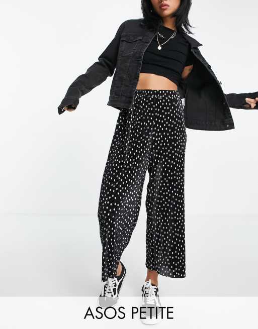 ASOS DESIGN Petite – Plissierte Culotte-Hose mit schwarz-weißem Punktemuster